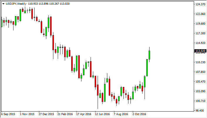 The USD/JPY pair had yet another positive week, but at this point in time we are starting to see quite a bit of resistance of the 113 handle. This market quite frankly needs to see a significant pullback in order to offer value and continue to move higher. Ultimately, I think that the market should continue to go much higher, and I have a target of 120. However, we need a pullback in order to find the momentum necessary to make that move. I have no interest in selling.
