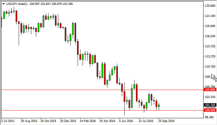 The USD/JPY pair initially fell during the course of the week but found enough support at the 100 level to bounce and form a hammer. I believe that the