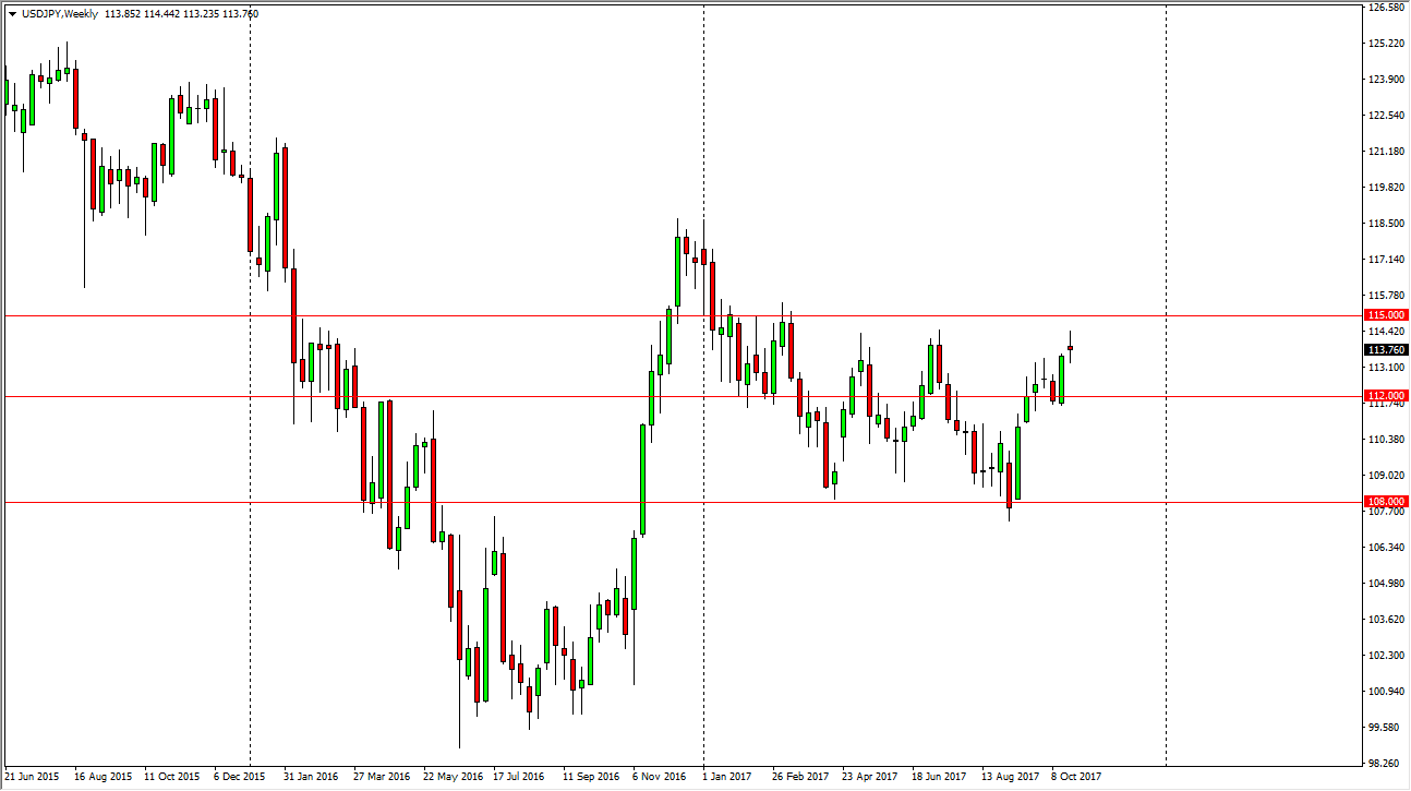 Pay attention to the overall attitude of stock markets and of course risk appetite. The better off we are as far as that metric is concerned, the better this pair does. Keep in mind that the Federal Reserve is more than likely going to raise interest rates several times, and that should eventually put quite a bit of bullish pressure in this market. However, even with the overall bullish move that we have seen as of late, we are still in consolidation. The 108 level has been the bottom of it for some time, so if we do break down below the 112 level, I think at that point we probably go revisiting that area. However, I believe that the market is trying to build up enough momentum to finally leave this region and to the upside. Patience will be needed for some type of break out though.