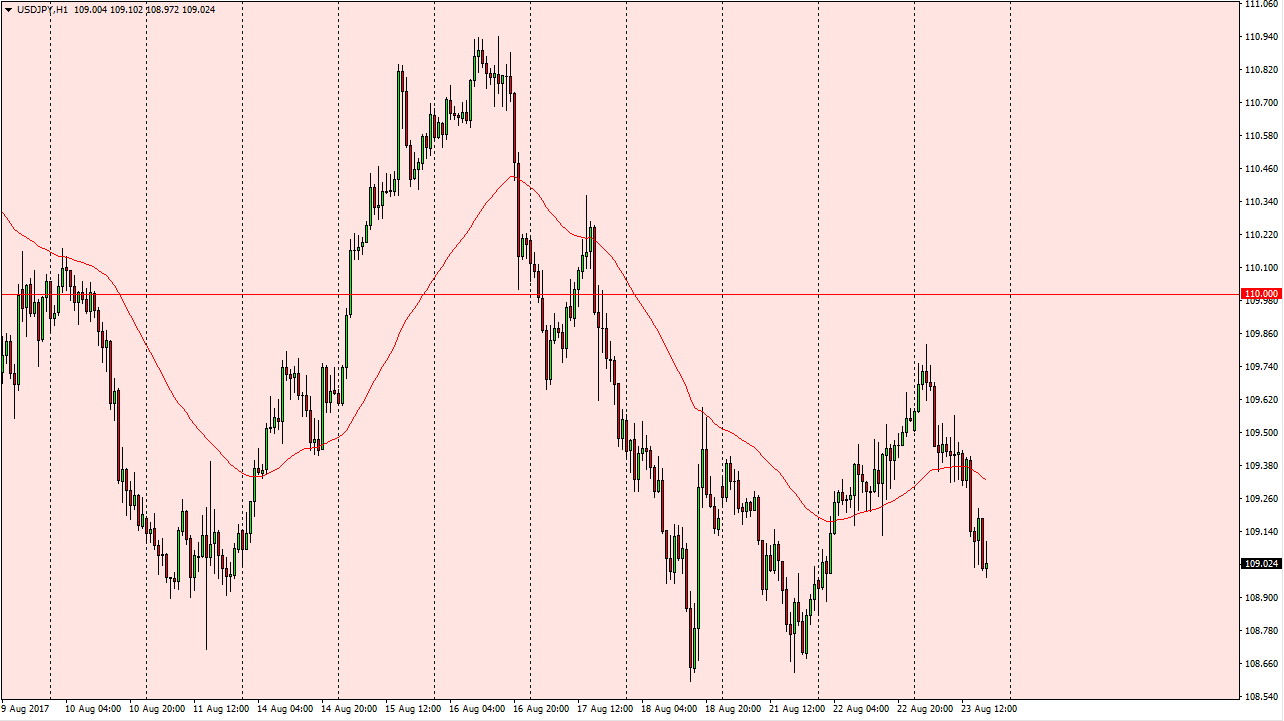 The USD/JPY pair fell significantly on Wednesday, as it was a bit of a “risk off” type of situation. I still see a significant amount of support underneath that the 108.50 level, so I believe that it is only a matter of time before the buyers return. We may be ready to consolidate between the 108.50 level, and the 110 level above. If we do break down below the 108.50 level, the market will more than likely go looking for the 105 level after that. If we could break above the top of the consolidation area, I believe that we then go to the 111 level. I suspect that we get a lot of back and forth trading until Janet Yellen speaks on Friday.