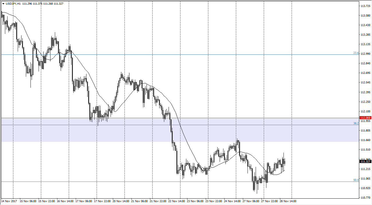 I believe that the US dollar continues to struggle due to the United States Congress failing to pass tax bills, and of course the possibility of some type of roll over in the stock markets and of course “risk assets.” Likely markets will continue to be very volatile, and that of course works against the value of this pair at times, because the Japanese yen is a safety currency. I think that the 108-level underneath is the longer-term target if we continue to see softness in this pair, because it is the bottom of the longer-term consolidation that the market has been in for some time. The market breaking below the 108 level would be catastrophic. I don’t think that happens though, because eventually the U.S. Congress will have to pass some type of tax bill. Beyond that, we have interest rates rising in the United States which should naturally soften any type of move below in this market, and perhaps offer a bit of a cushion. It really comes down to how levered you are, whether you want to start trying to pick up the US dollar at cheap levels, or if you want to short the market. I personally believe in shorting until we break above the 112 level, or visit the 108 handle.