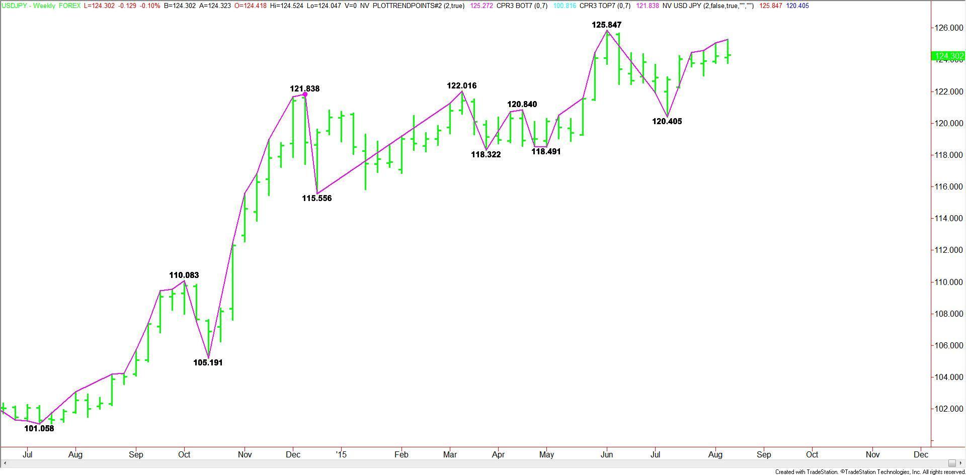 The USD/JPY posted a number of volatile swings last week before closing lower. The volatile moves were triggered when the People’s Bank of China shocked the financial markets by devaluing the Yuan three consecutive sessions. The Greenback surged to a two-month high against the Yen on the central bank’s moves before China intervened to drive the U.S. Dollar lower.