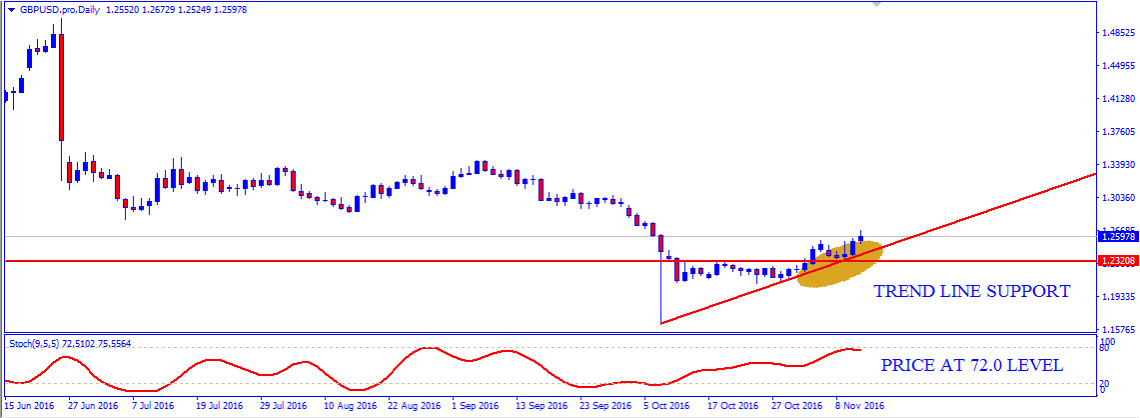 Price action closed above rebound of trend line and oscillator rising above 72.0 levels indicating shift in momentum.