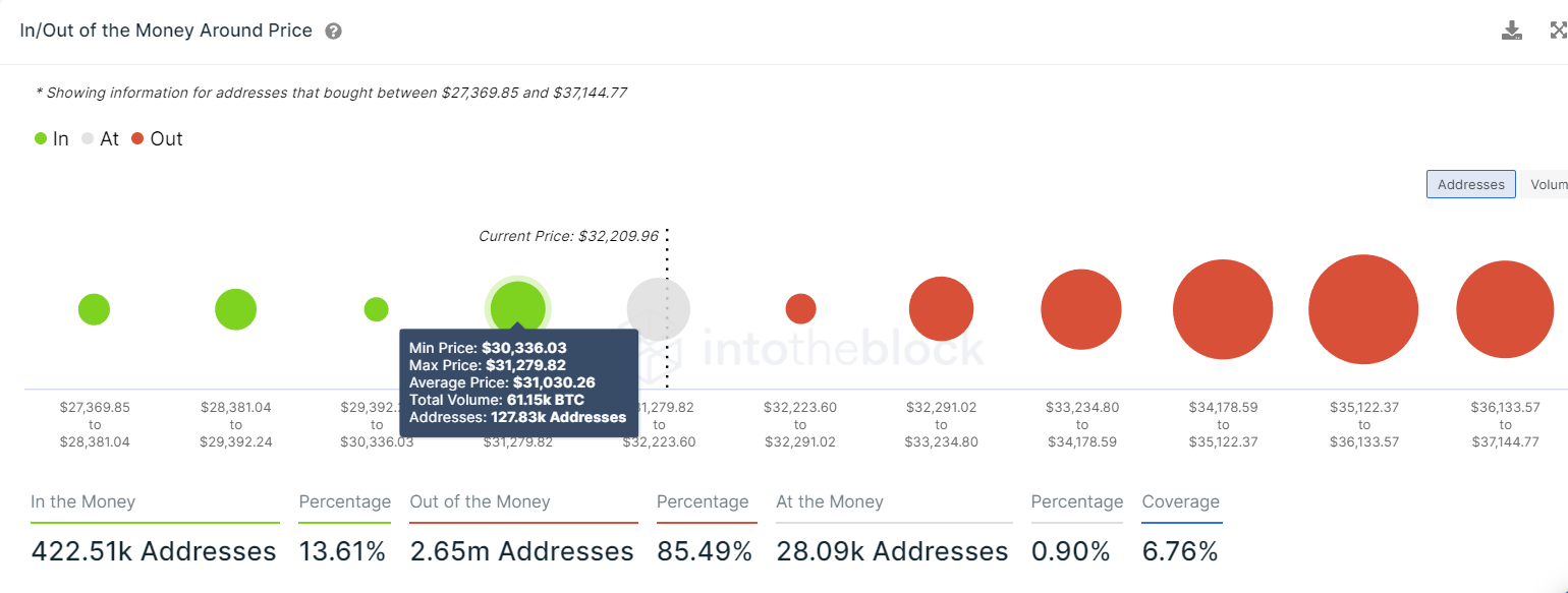 These addresses may try to break even in the event of a bullish impulse, which could reject BTC and send it back down to $30,000.