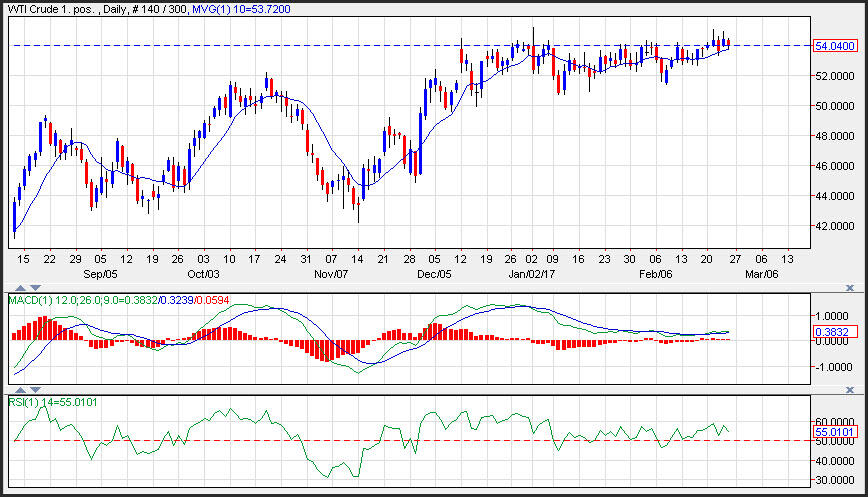 Crude oil prices moved lower on Friday, and remains range bound, unable to break out despite continued compliance from OPEC. The small inventory build in crude oil was offset by a large total petroleum draw. Exports from the United States are increasing at a rapid rate, which shows strong oil demand. Resistance is seen near the weekly highs at 55.03, while support is seen near the 10-day moving average at 53.72. Momentum is neutral as the MACD (moving average convergence divergence) index prints near the zero index level with a flat trajectory which reflects consolidation.