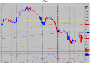 WTI Crude October contract Daily Forecast - 05 September 2014WTI Crude headed lower breaking 9460/50 to bounce 16 ticks above the next target & support at 9400/3990. This bounce took prices back up to 9460 & we have been sitting just below over night. A push higher should target 9510/20 but above 9540 opens the door to a retest of this week’s high of 9583/91. A break above last week’s high of 9600 allows further gains to the 100 day moving average at 9645/50. If we continue higher look for 9690/9700 then strong resistance at 9745/50.