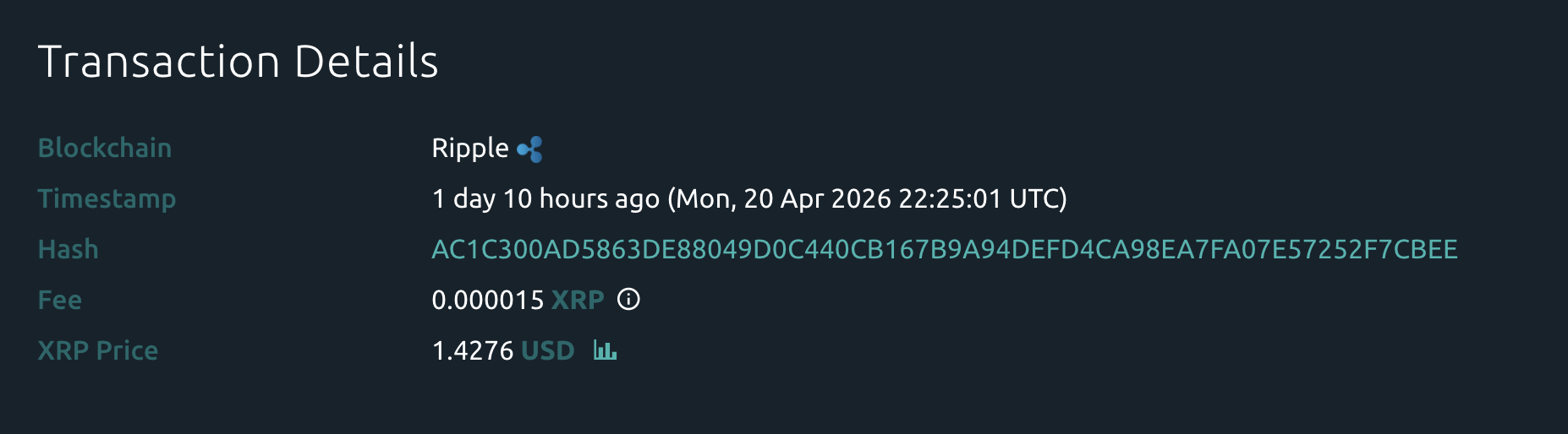 Ripple moved 75 million XRP, worth about $107 million across a series of company-linked wallets and intermediary addresses between April 20 and April 21, according to data tracked by Whale Alert.