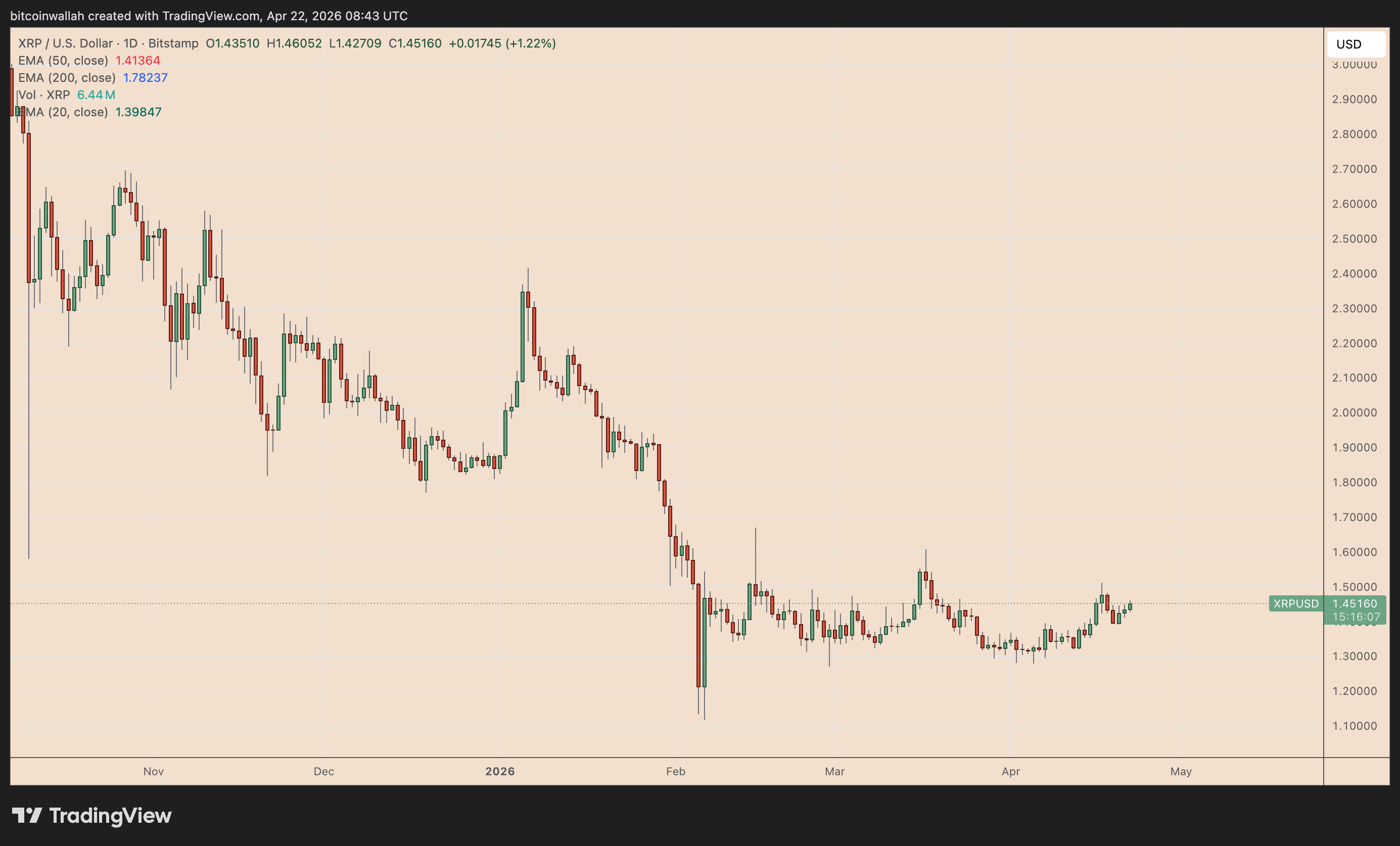 The XRP/USD exchange rate jumped 1.77% to reach an intraday high of around $1.46.