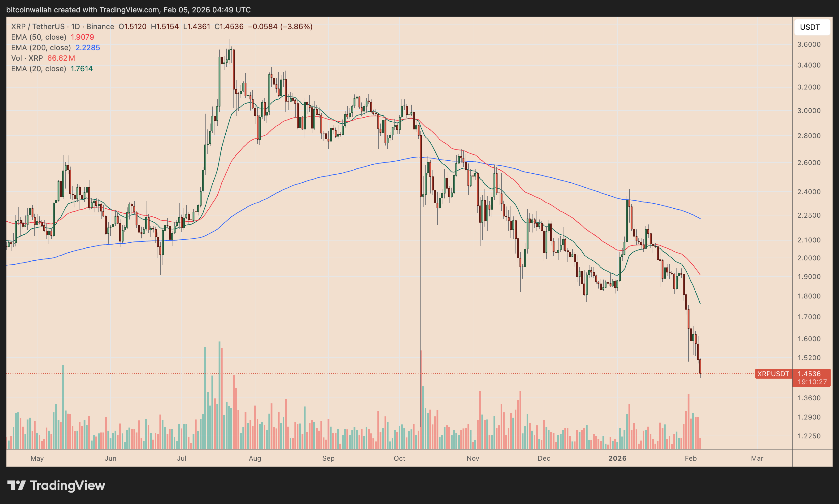 On Feb. 5, the Ripple-associated token plunged circa 5.25% to $1.436, its lowest reading in four months. Its downside mirrored similar declines in the crypto market, led by Bitcoin’s (BTC) dip toward $70,000.