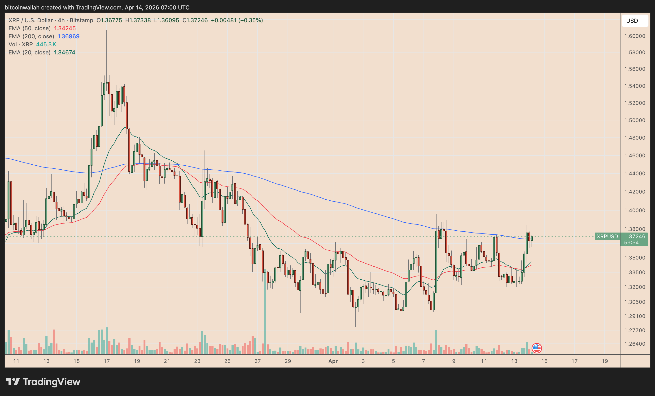 The XRP/USD exchange rate jumped by almost 4% in the last 24 hours to reach $1.37.