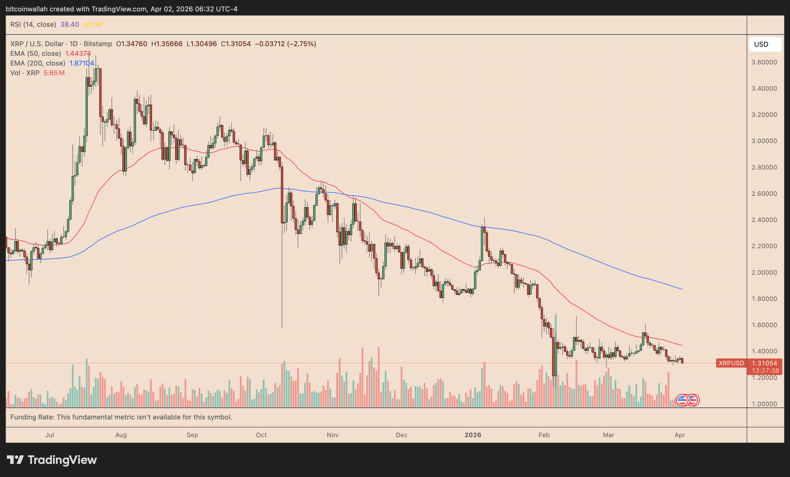 The trend continued on March 30. Binance logged 49 million XRP in outflows worth about $65.7 million, and Coinbase posted 170 million XRP worth about $227.8 million. Across the two days, combined outflows reached 442 million XRP, or roughly $592.3 million.