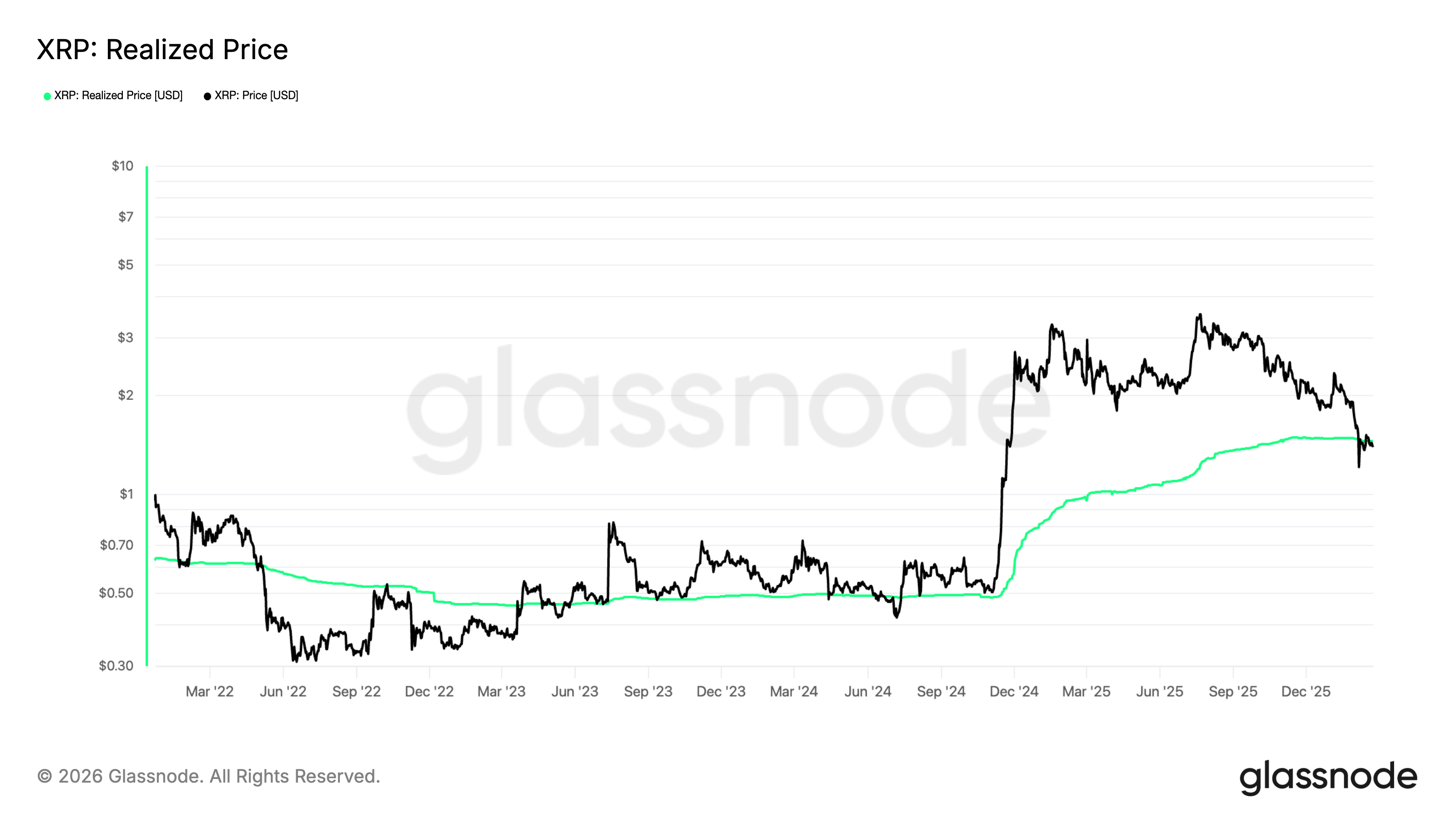 For instance, in 2022, XRP price slipped to $0.30 a month after breaking below its realized price at around $0.60.