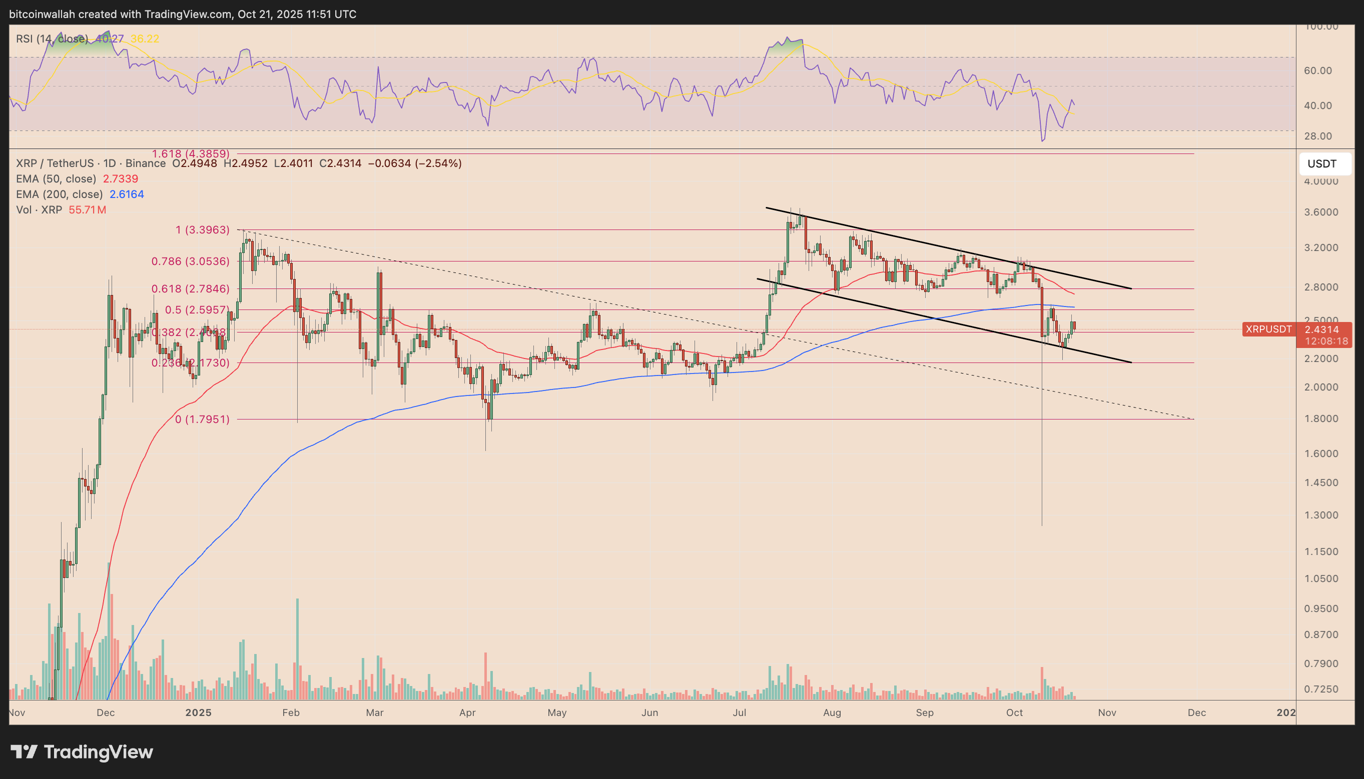 From a technical standpoint, XRP is consolidating inside a descending parallel channel, with short-term upside potential toward the channel’s upper boundary near $2.80.