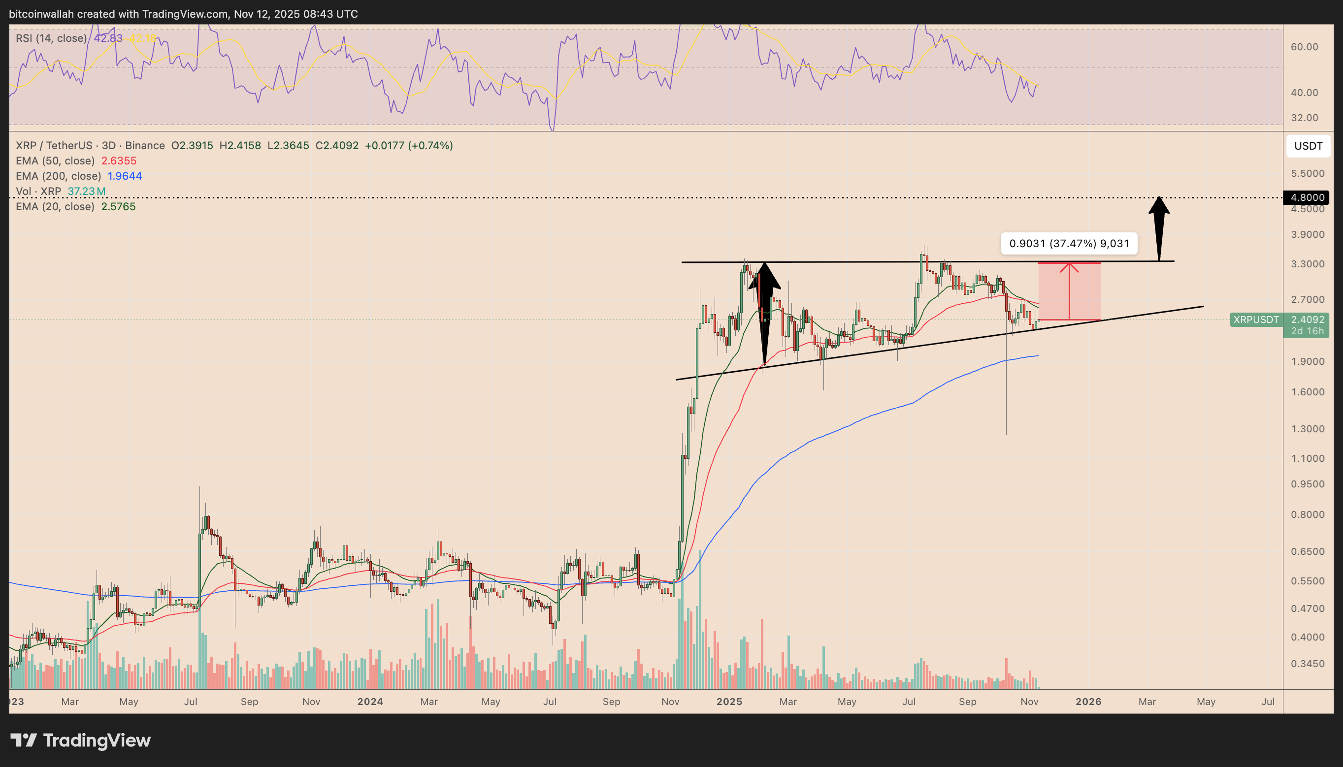 XRP appears to be consolidating within a bullish ascending triangle pattern, suggesting that its ongoing correction may be nearing an end.