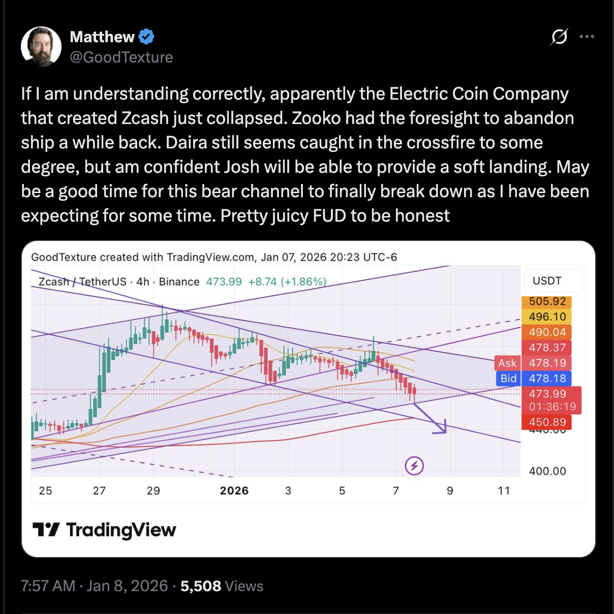 As a result, traders have interpreted the departure of multiple senior developers as a structural shock, which ultimately led to the ZEC price dump in the last 24 hours.