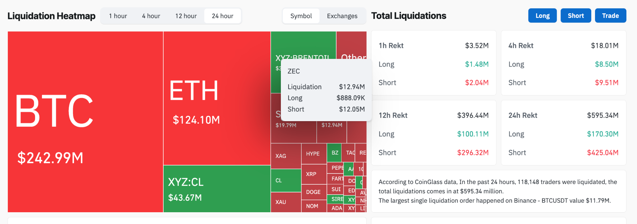 Over $12.9 million in ZEC positions were liquidated in the past 24 hours, with shorts accounting for roughly $12.05 million of that total.