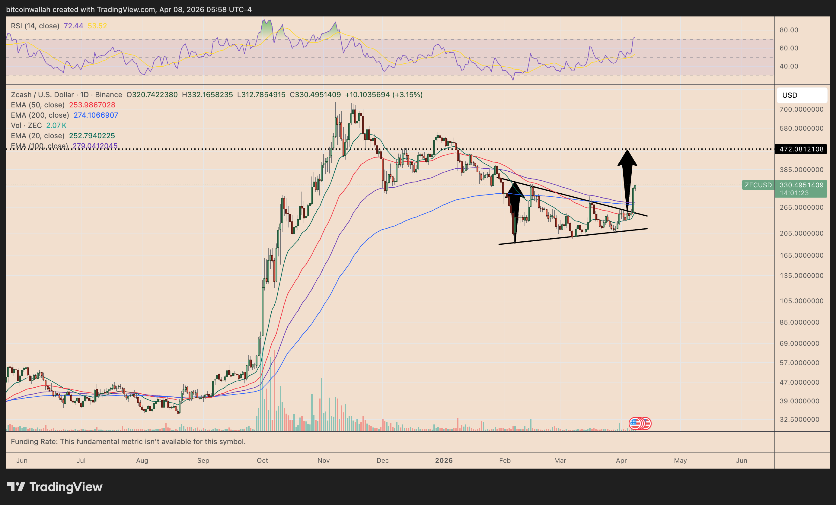 Zcash (ZEC) is flashing a high-conviction breakout setup as macro relief from the Trump-brokered ceasefire revives risk appetite across beaten-down altcoins.