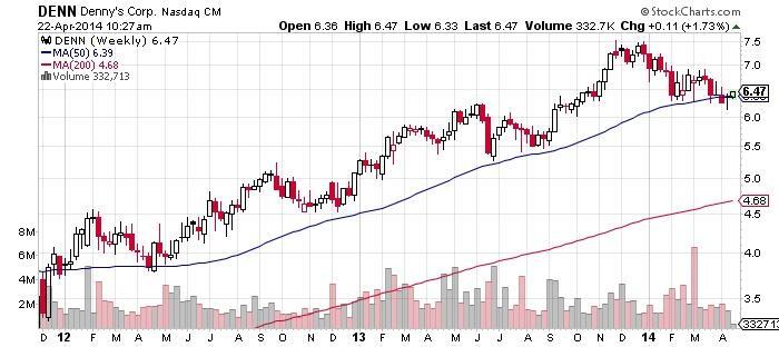Now, while I continue to view McDonald’s as one of the top fast food stocks for consistency and long-term results, you can also take a look at small-cap Dennys Corporation (NASDAQ/DENN) for a more speculative investment that could offer higher returns, as my stock analysis suggests. (Many of you are probably familiar with its “Grand Slam” breakfast.)
