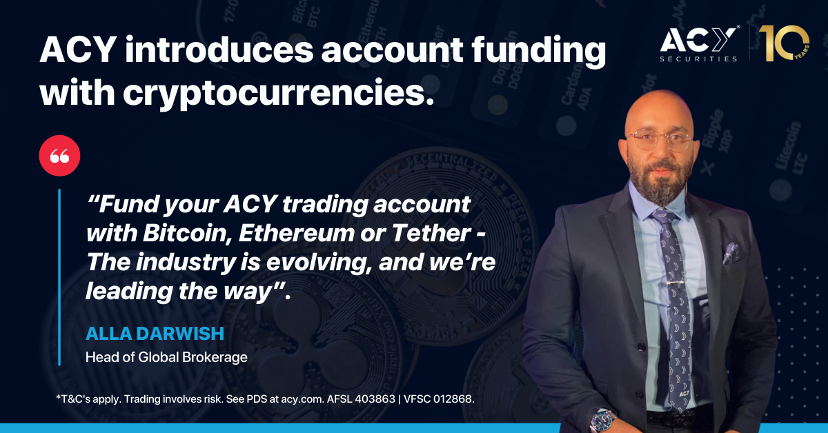 ACY Securities, one of the world’s leading tech-focused multi-asset CFD brokers has announced today that clients will now have the option to fund their trading accounts with digital currencies.