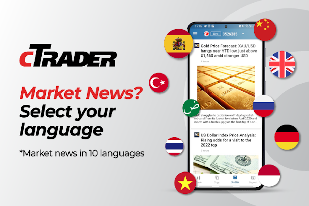 “News” is now readable in English (English), Spanish (ES), Russian (RU), Arabic (AR), Indonesian (ID), Turkish (TR), German (DE), Chinese (zh-CN), Vietnamese (VI), and Thai (TH). This is available on all devices – cTrader Desktop, Web, and Mobile Apps.