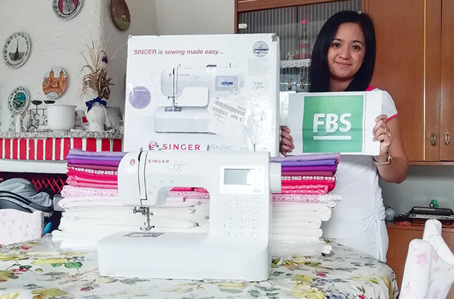 The August winner of “Dreams Come True” contest is Sherlani Jane Fanari, a 28-years old Filipina who lives in Italy with her husband and kids. She is a housewife and her favorite thing to do is sewing, so she wished for a brand-new sewing machine and cotton fabrics to create clothes, furniture covers , nd stuffed toys. But it’s not just a hobby for her – she wants to sew things for sale to support her family in Italy and her mother in the Philippines, because her house was destroyed by Typhoon Haiyan.