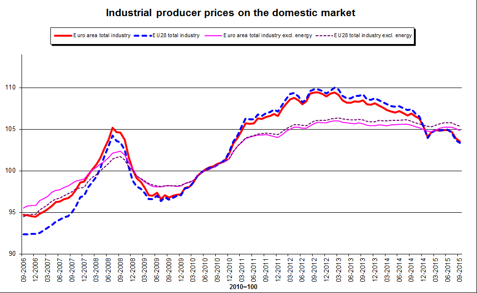 Industrial producer prices fell by 0.3% for the euro area and for all members of the European Union (EU) for September, according to the latest figures