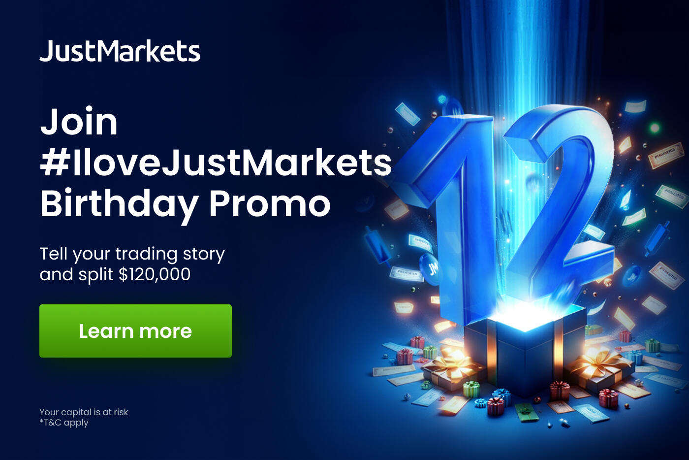 The #IloveJustMarkets Birthday Promo rewards your engagement and creativity in sharing your exciting trading stories and experience with JustMarkets. The first 4,000 participants will each receive a $30 trading promo code. JustMarkets team will also select the top 10 most compelling and heartfelt stories from traders specially selected to highlight our anniversary celebration to give them an amazing $120 cash prize.